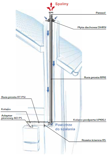 Stosuje się go głównie do montażu w istniejący szacht kominowy.