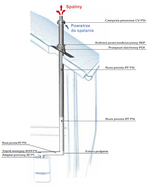 Zestaw przeznaczony jest do odprowadzania spalin z kotłów kondensacyjnych i turbo pionowo przez dach budynku.